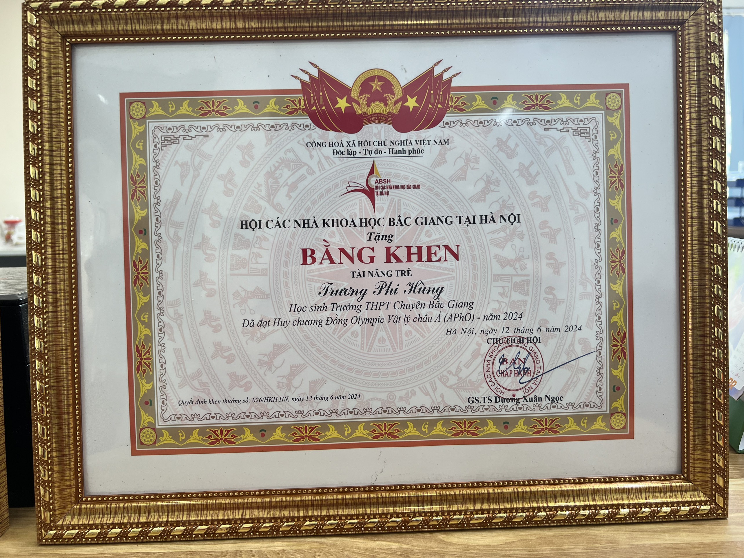Hội khoa học Bắc Giang tại Hà Nội (Hội KHBG) Tuyên dương 2 học sinh đoạt huy chương tại cuộc thi Olympic Vật lí châu Á
