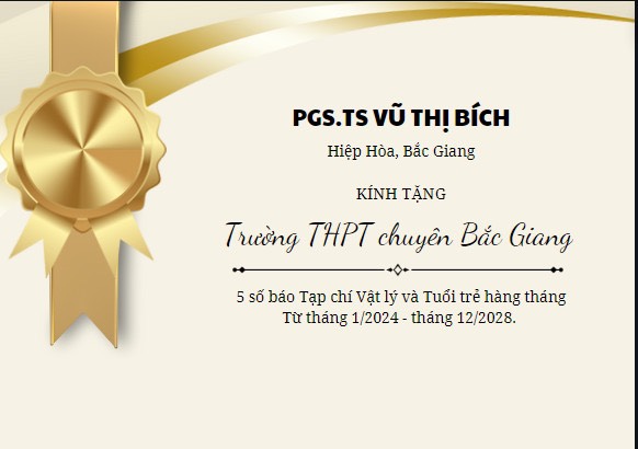 Chiều 14-5-2024, Hội KHBG tại Hà Nội cử Đoàn gồm 10 người do GS.TS Dương Xuân Ngọc dẫn đầu về UBND tỉnh Trao giải thưởng Tài năng trẻ cho 2 học sinh trường THPT chuyên của tỉnh: Thân Thế Công đạt huy chương vàng ; Trương Phi Hùng đạt huy chương đồng môn Vật lý Chấu ( APhO). Giải thưởng gồm Bằng khen và quà. Đồng thời cũng trao phần thưởng của một số cá nhân cho 2 học sinh. Riêng PGS.TS Vũ Thị Bích trao tặng Trường THPT chuyên của tỉnh 5 năm tạp chí Vật lý & Tuổi trẻ nhằm động viên và khơi dạy khát vọng học tập Vật lý của học sinh.UBND tỉnh , lãnh đạo Sở GĐ-ĐT; Trường THPT chuyên của tỉnh, gia đình phụ huynh 2 học sinh Ghi nhận và cám ơn Hội.